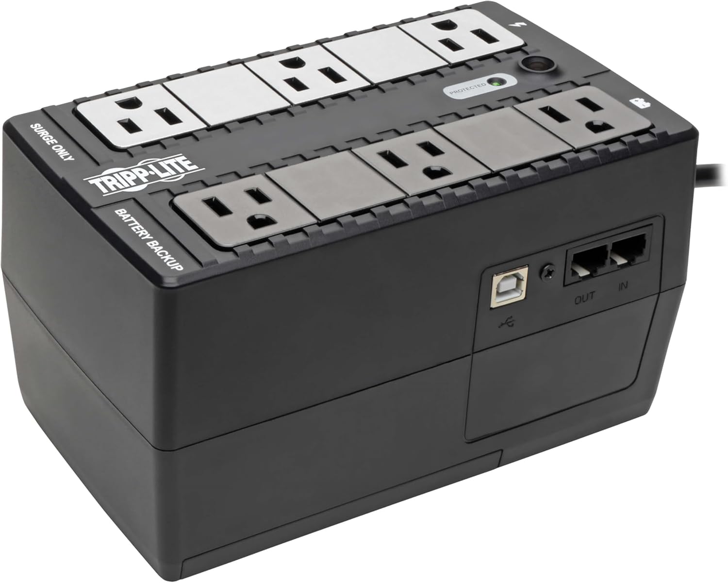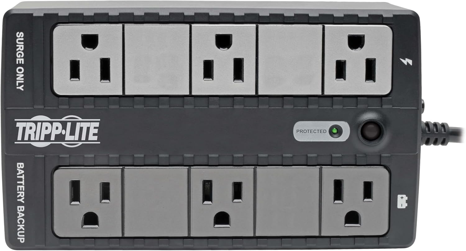 This compact unit is designed to safeguard your hardware with six outlets, ensuring your equipment receives a steady supply even during unexpected power outages. The sleek black design is not only functional but also blends seamlessly with any home or office decor. The Tripp Lite INTERNET350U model is a testament to the brand's commitment to quality and readiness. It's equipped with advanced features to deliver uninterrupted power to your devices, maintaining productivity and preventing data loss. Keep your desktop running smoothly with this trusted battery back-up solution.